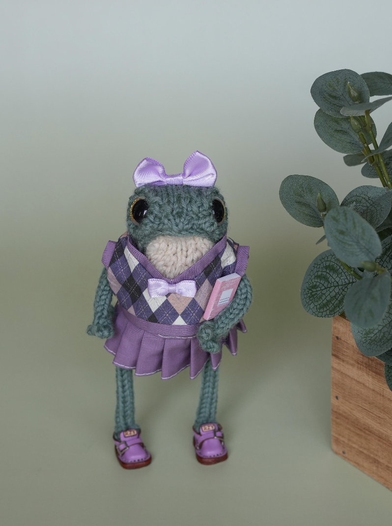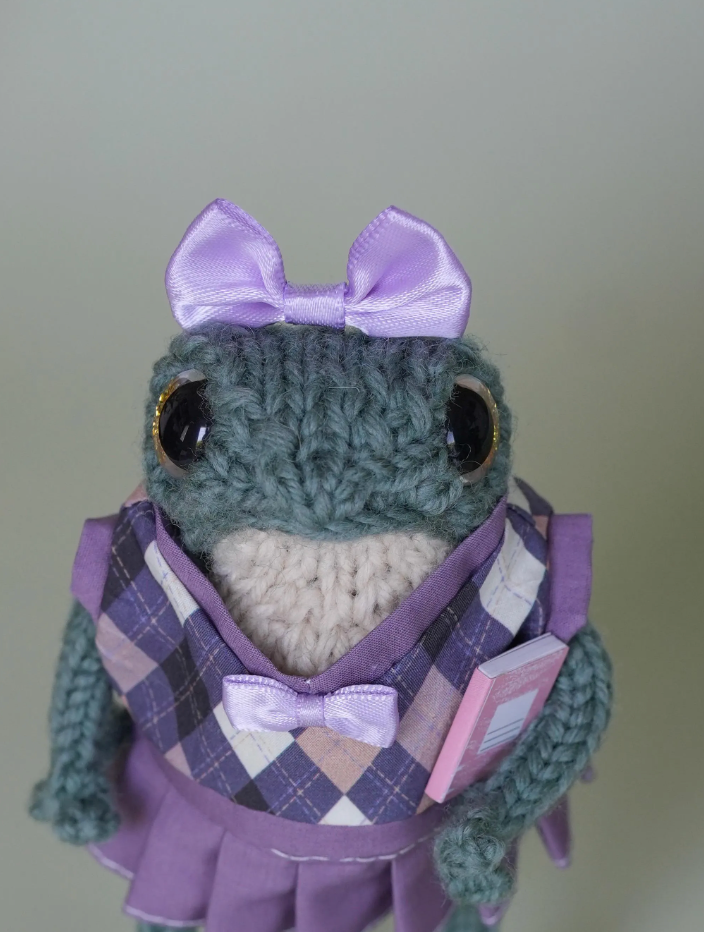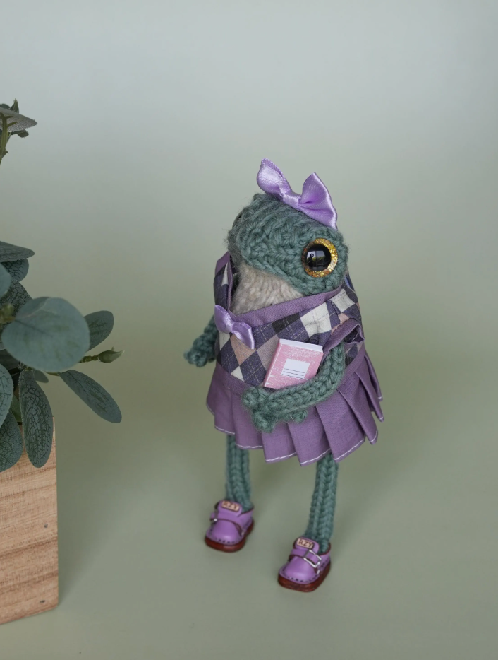 Your frog comes just as shown, complete with outfit, shoes, and accessories, plus a few extra surprises depending on what they’ve packed for their journey 🧳