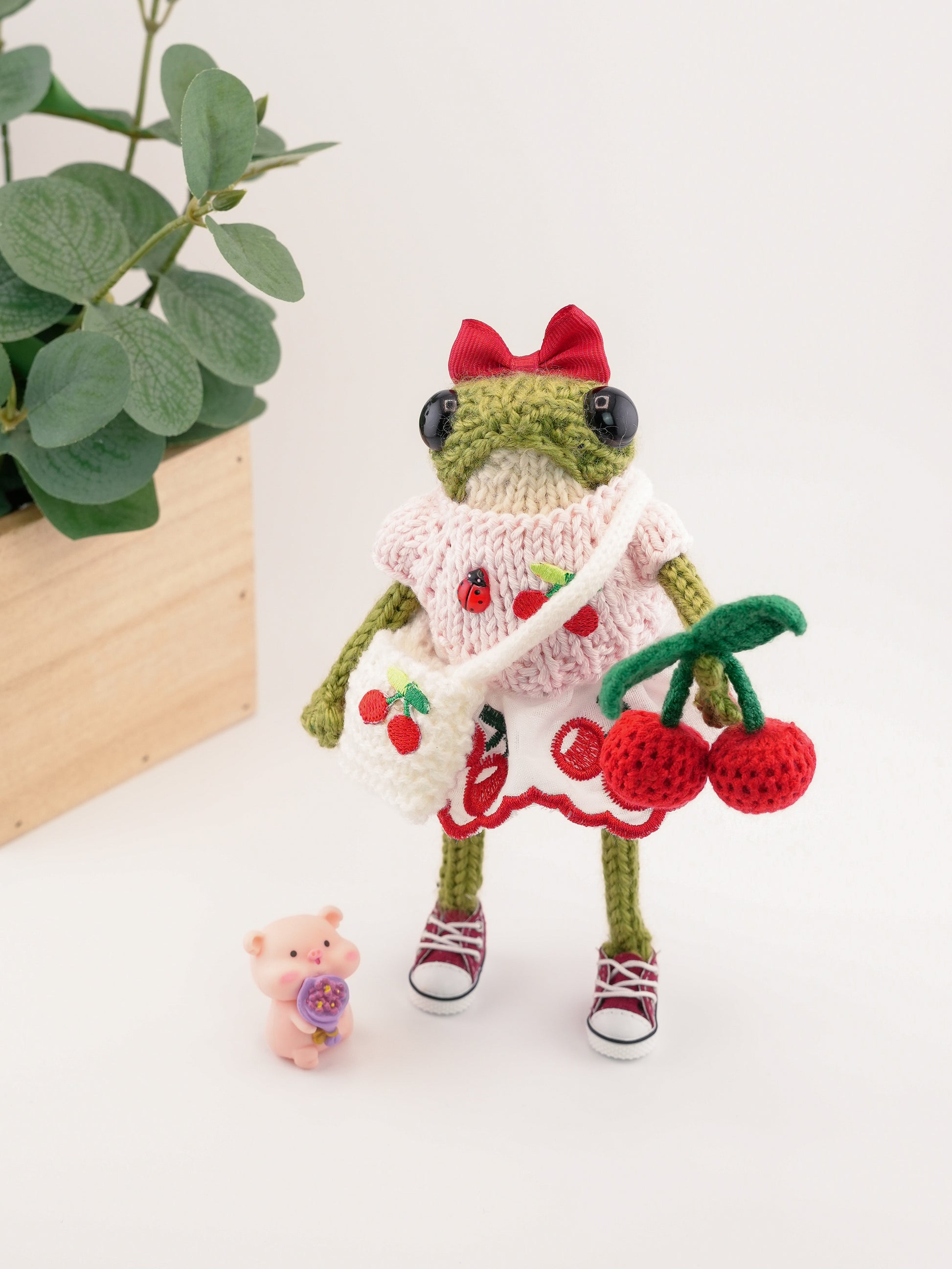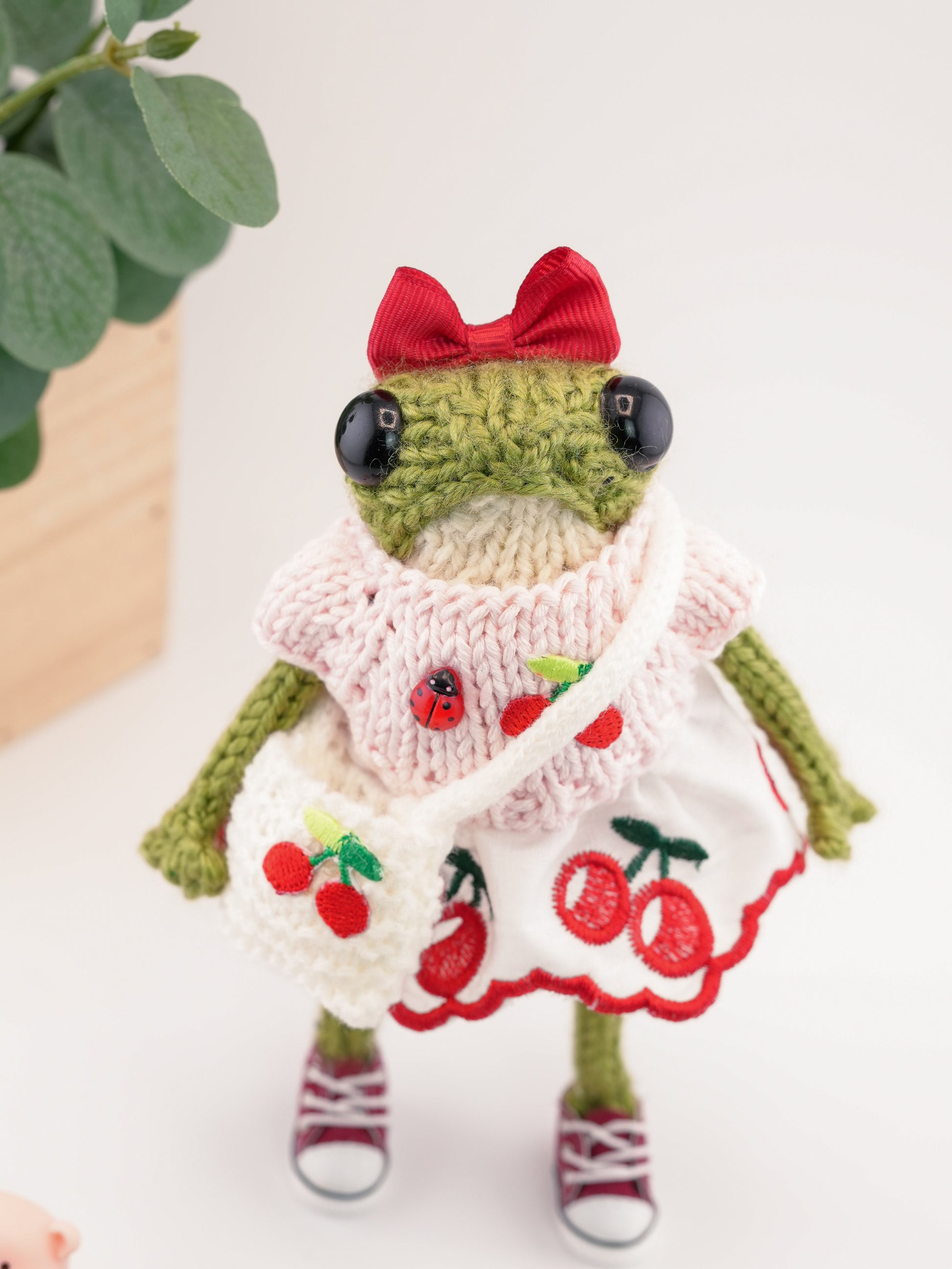 Your frog comes just as shown, complete with outfit, shoes, and accessories, plus a few extra surprises depending on what they’ve packed for their journey 🧳