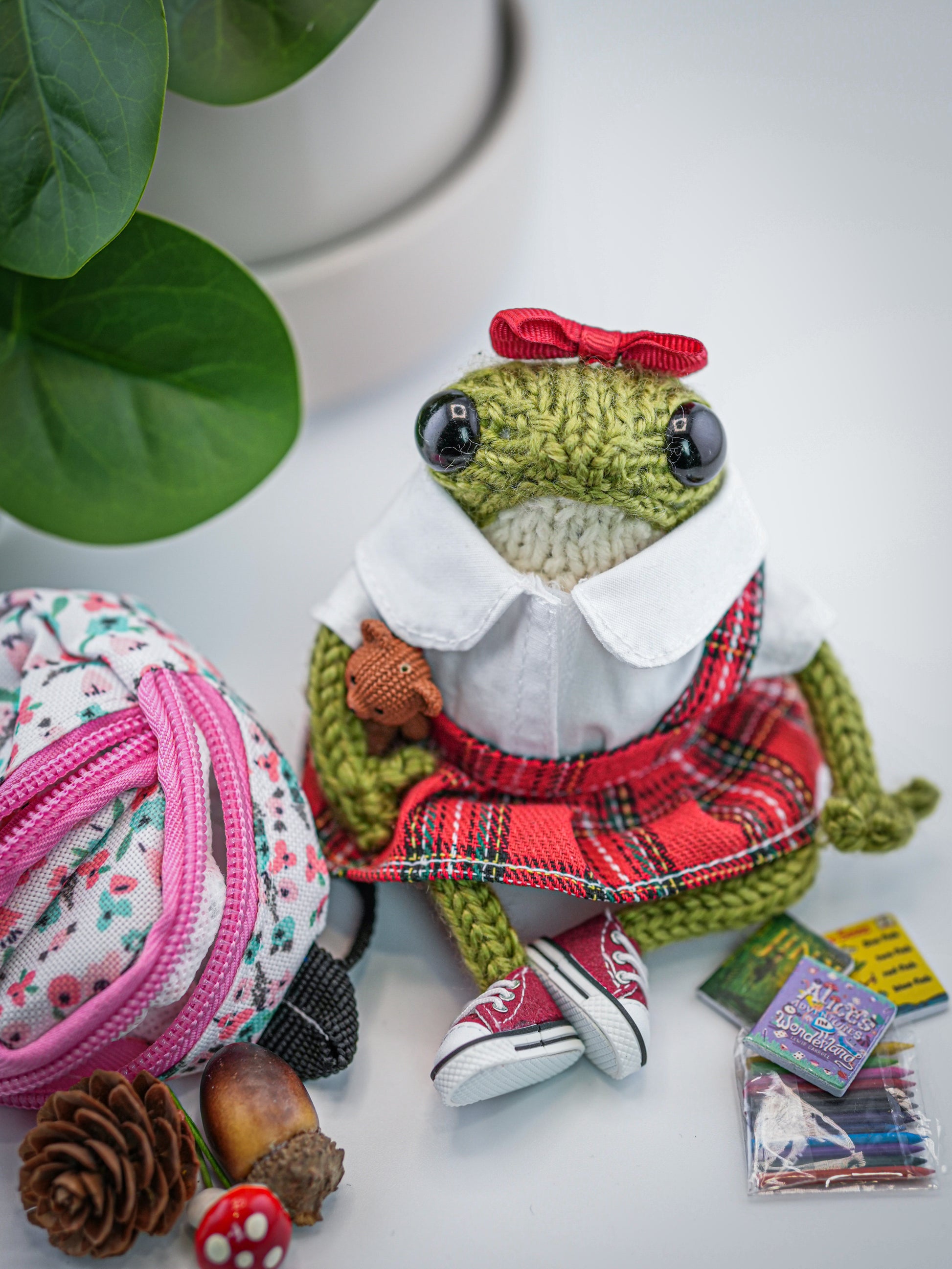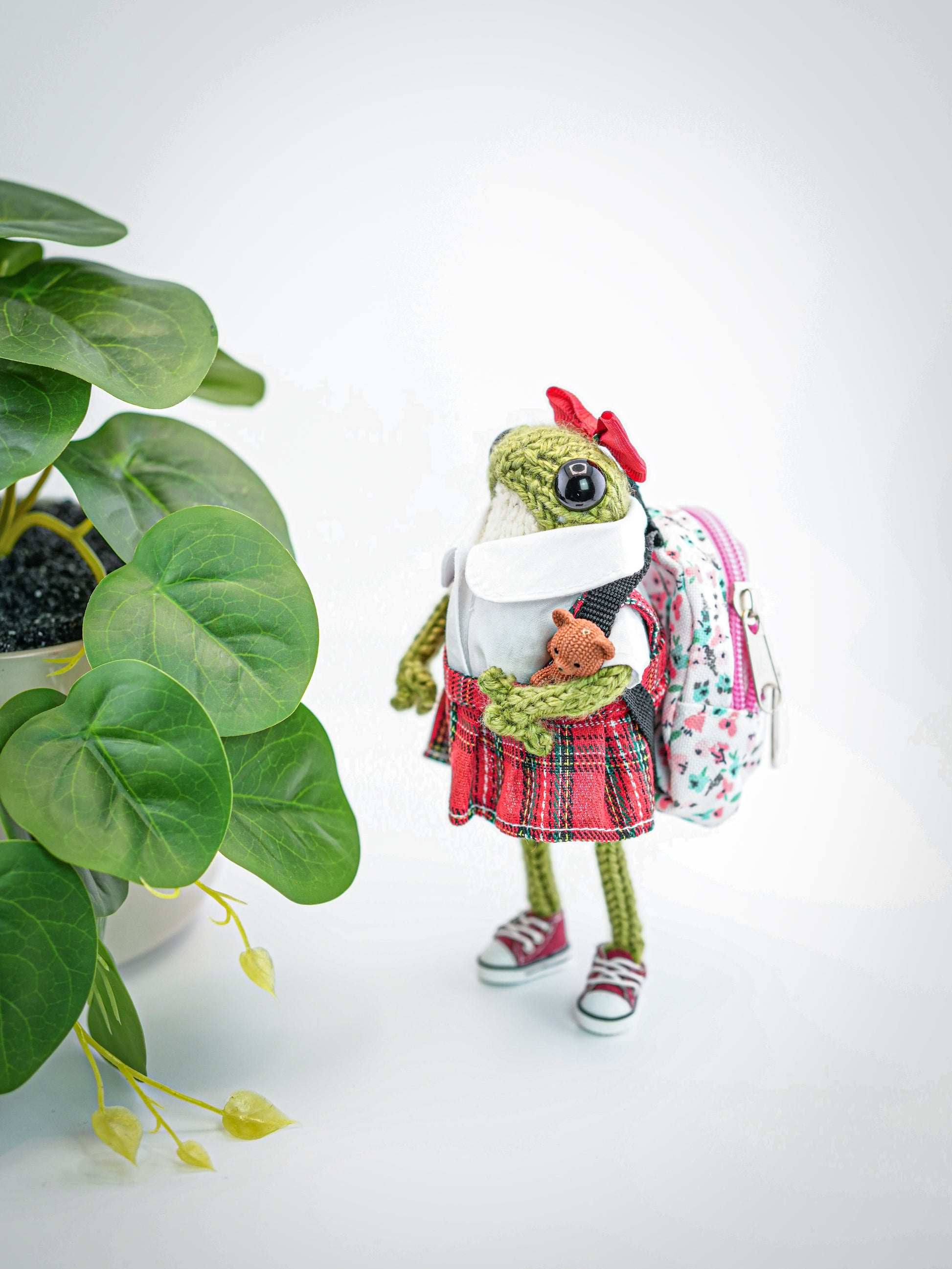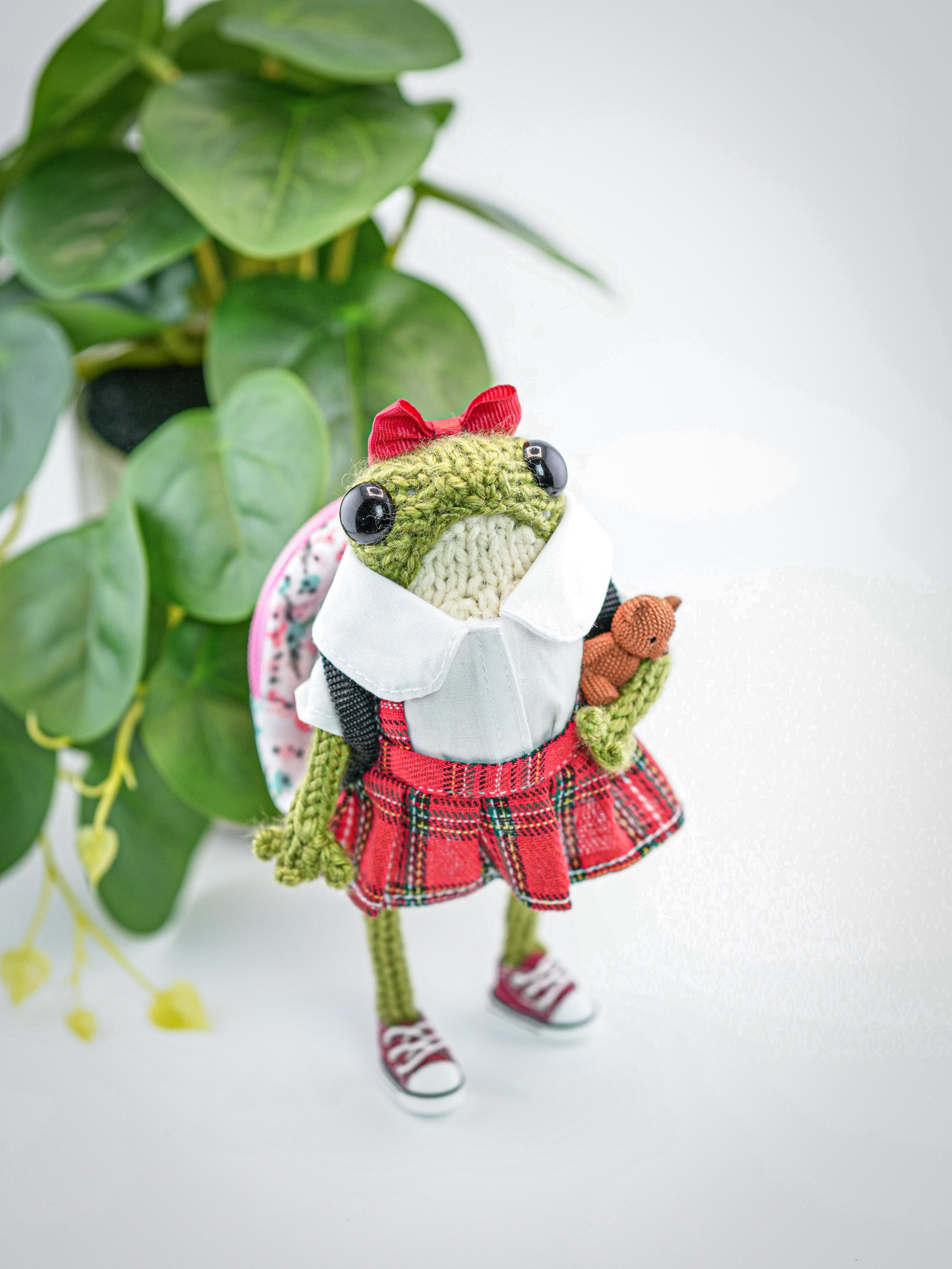 Your frog comes just as shown, complete with outfit, shoes, and accessories, plus a few extra surprises depending on what they’ve packed for their journey