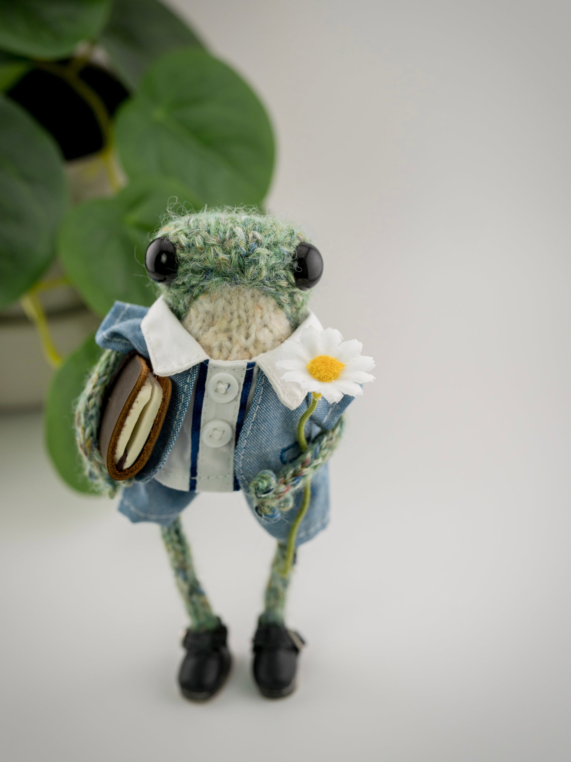 Your frog comes just as shown, complete with outfit, shoes, and accessories, plus a few extra surprises depending on what they’ve packed for their journey
