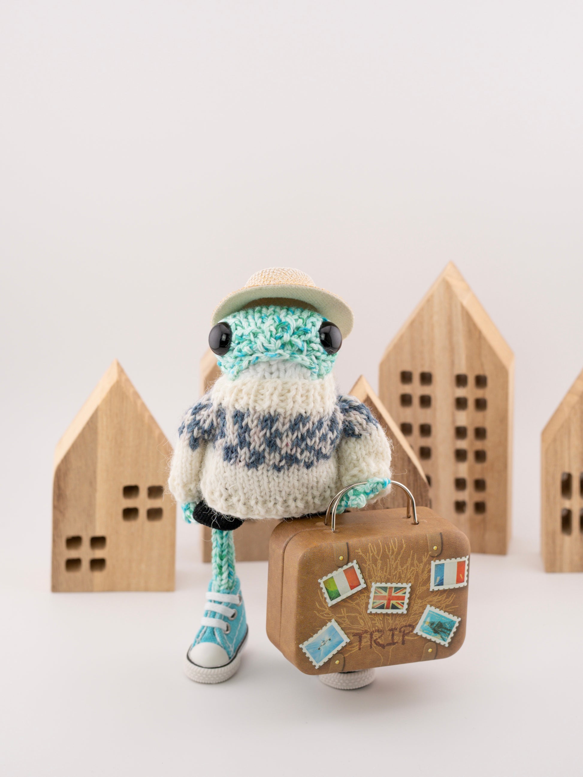 Your frog comes just as shown, complete with outfit, shoes, and accessories, plus a few extra surprises depending on what they’ve packed for their journey