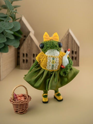 Your frog comes just as shown, complete with outfit, shoes, and accessories, plus a few extra surprises depending on what they’ve packed for their journey