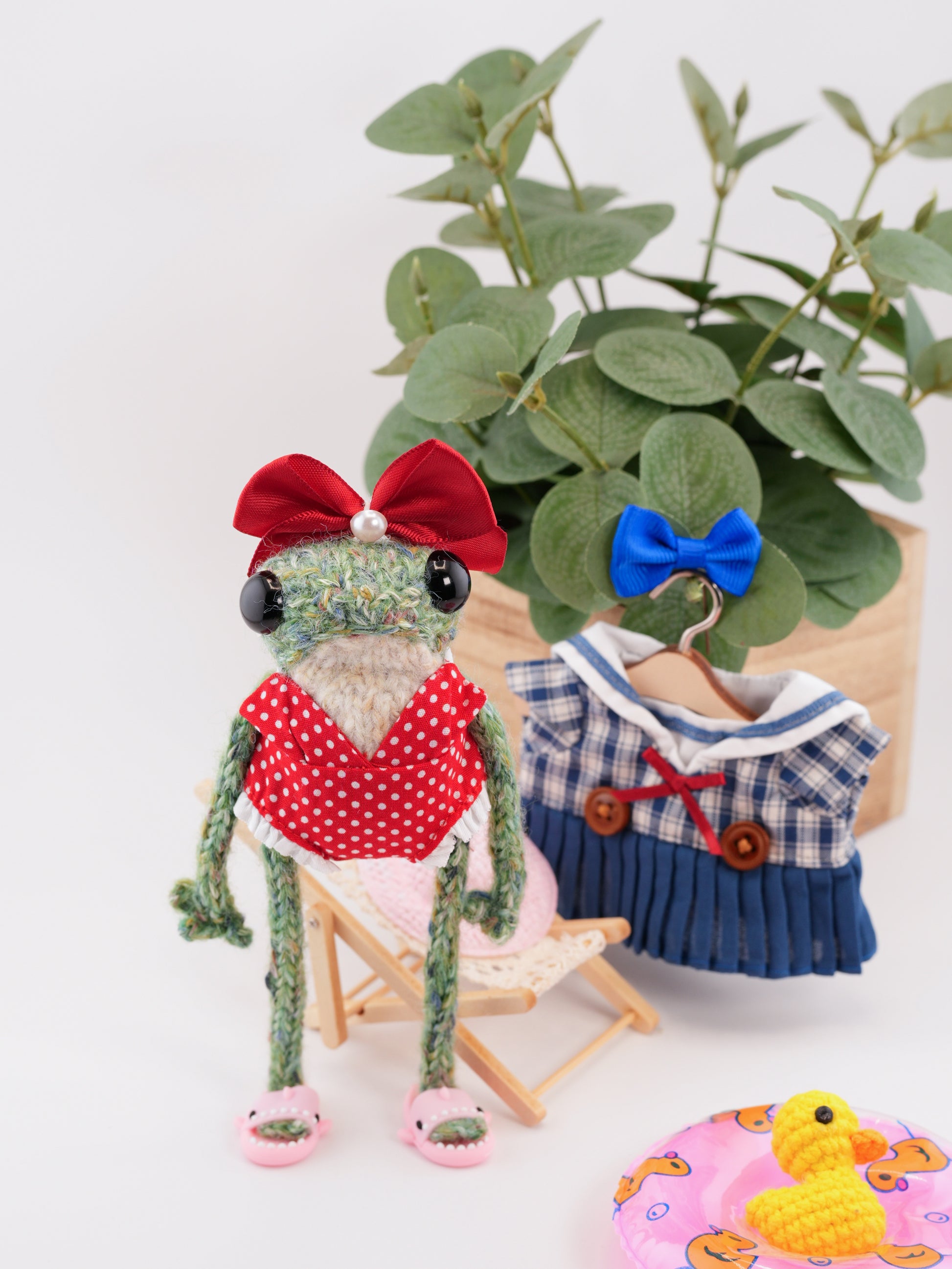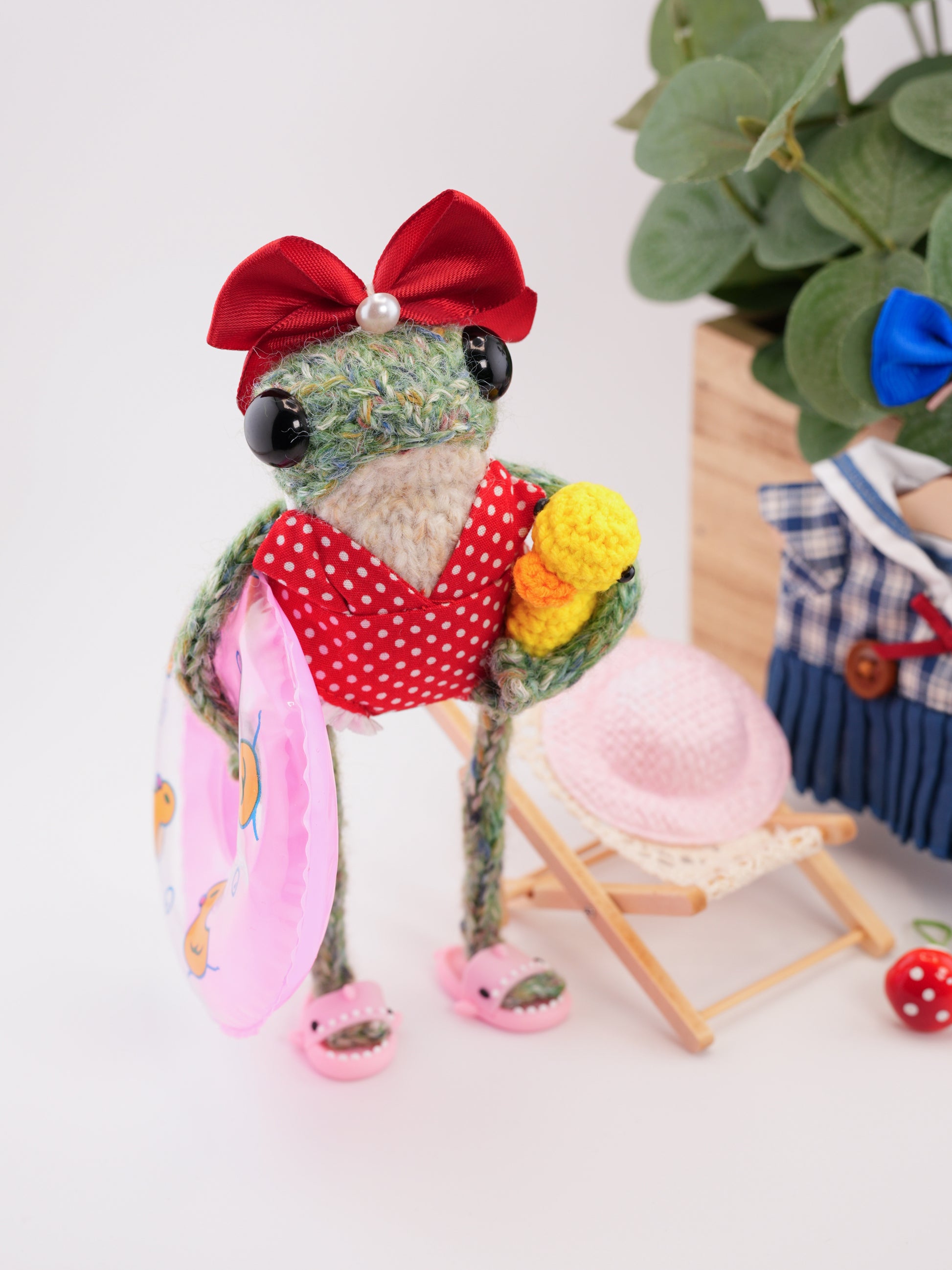 Your frog comes just as shown, complete with outfit, shoes, and accessories, plus a few extra surprises depending on what they’ve packed for their journey 🧳