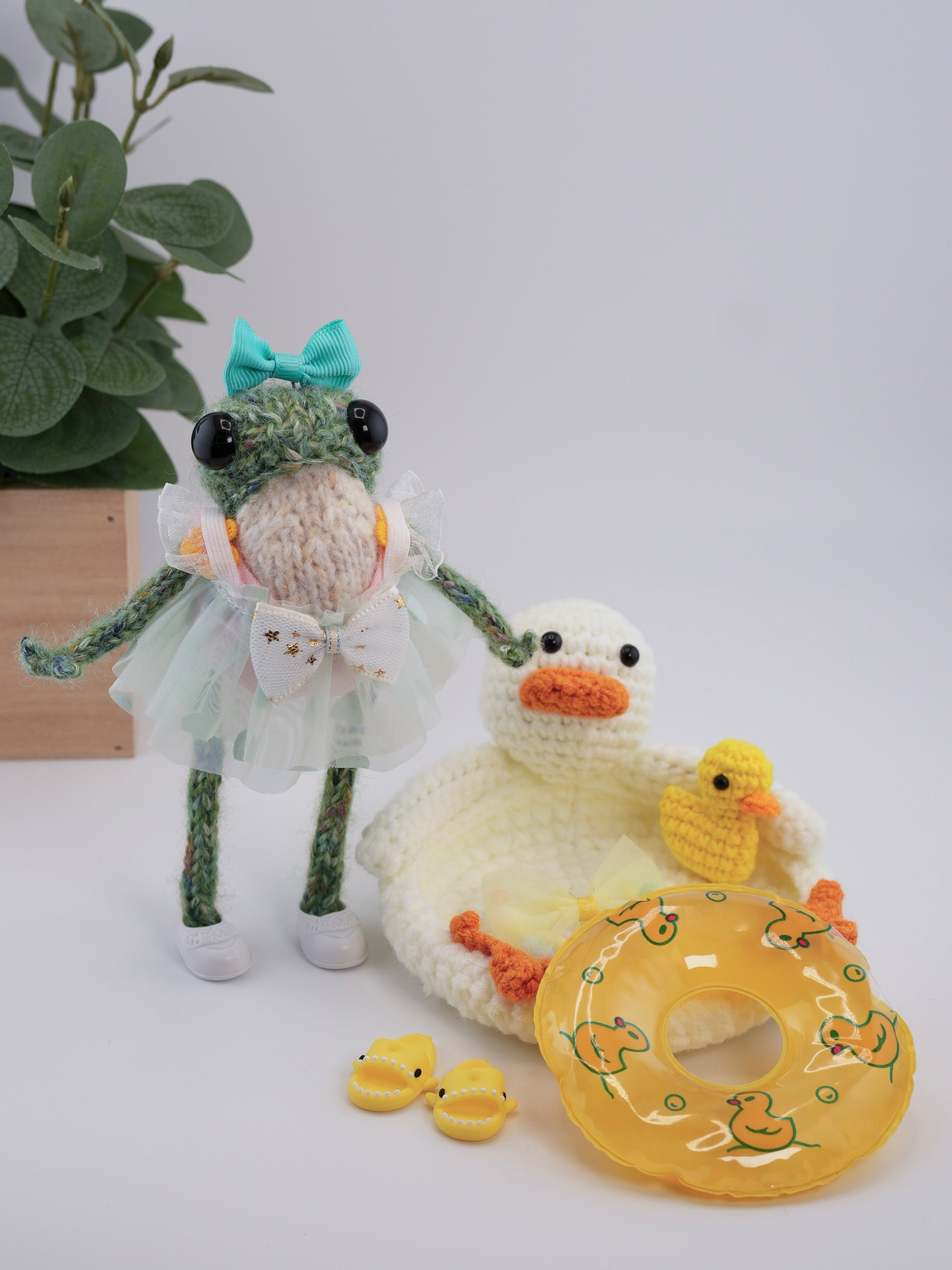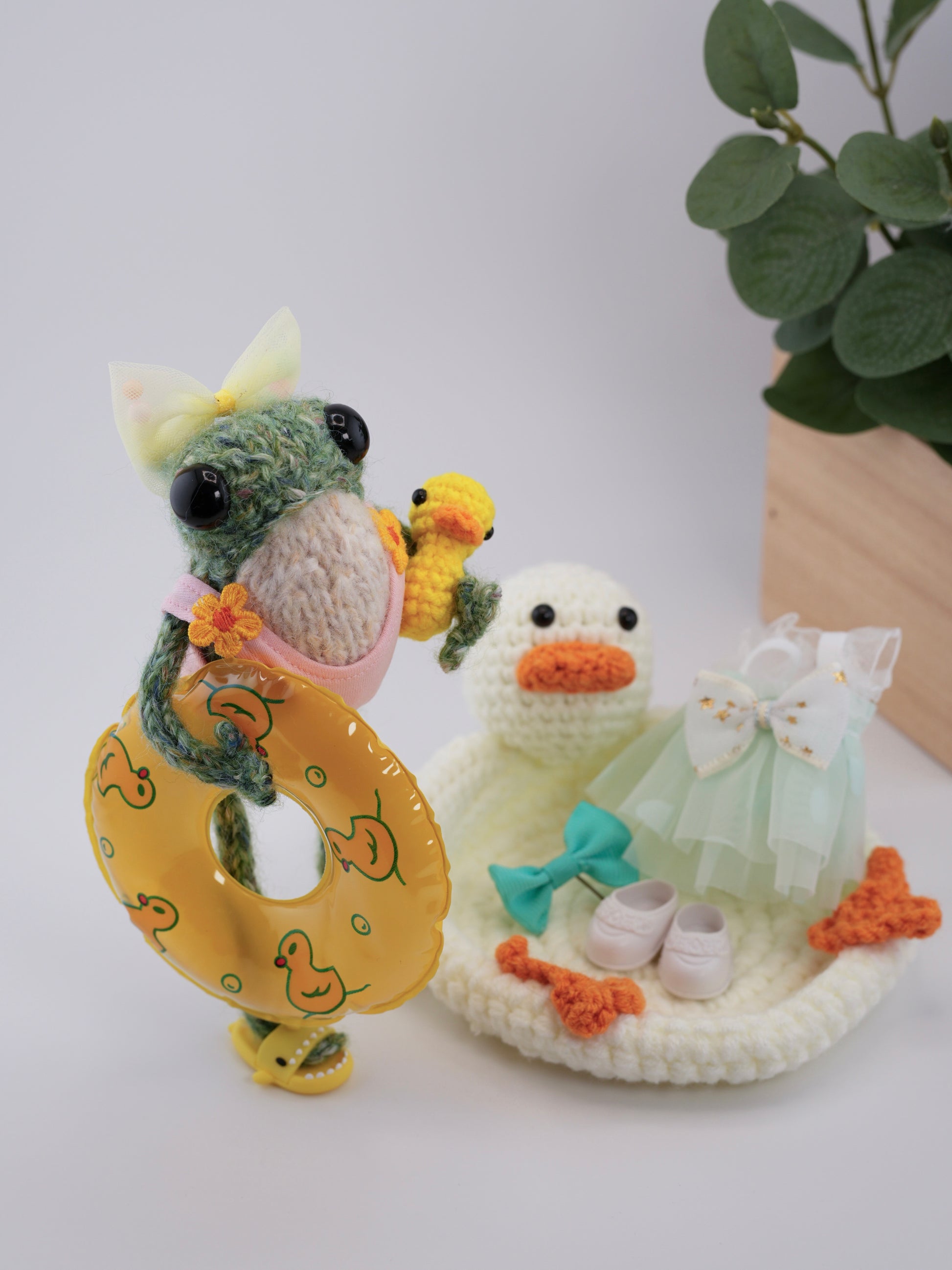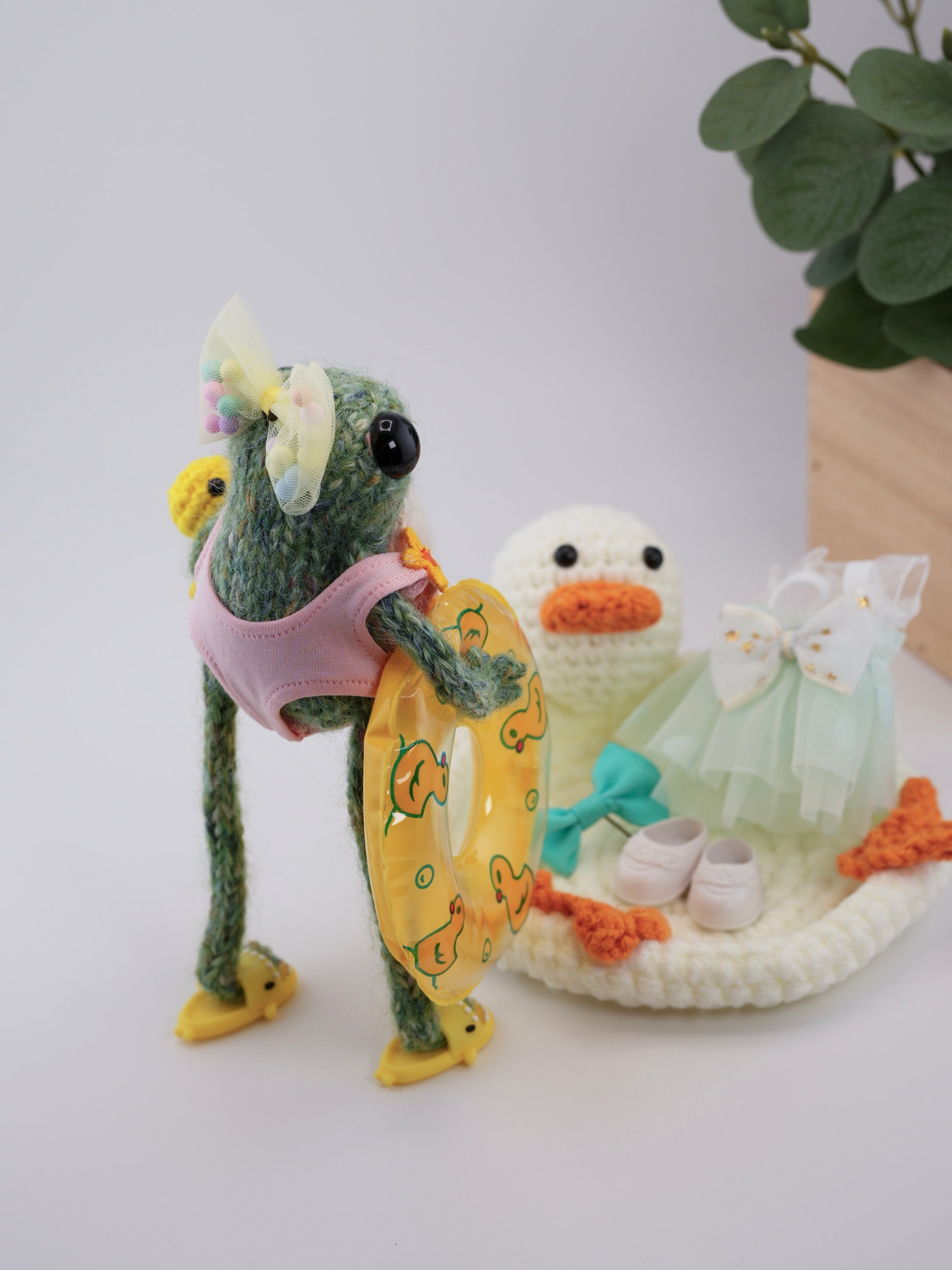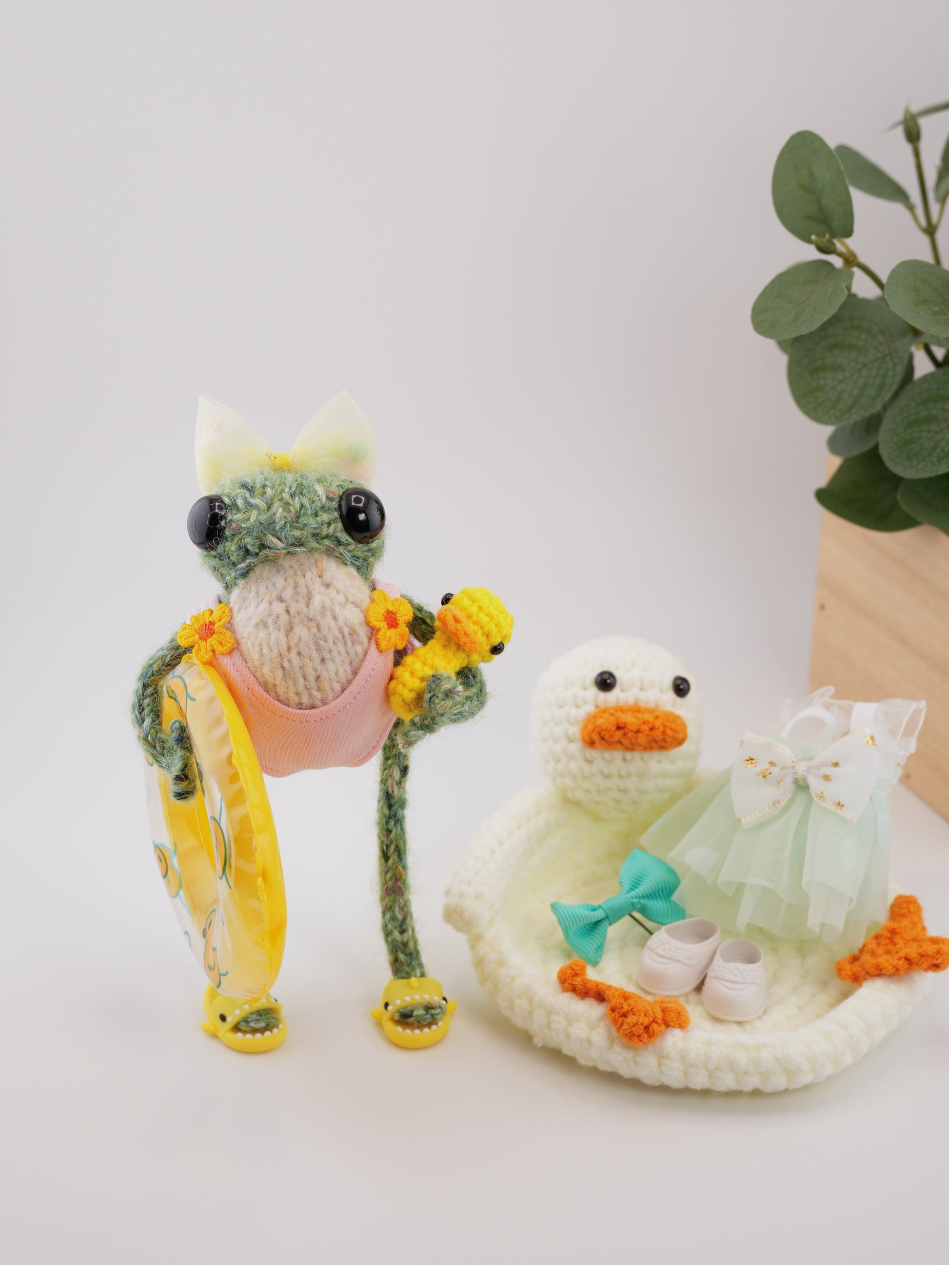 Your frog comes just as shown, complete with outfit, shoes, and accessories, plus a few extra surprises depending on what they’ve packed for their journey 🧳