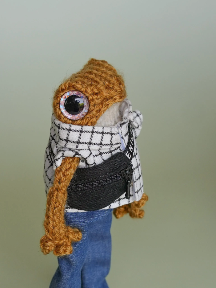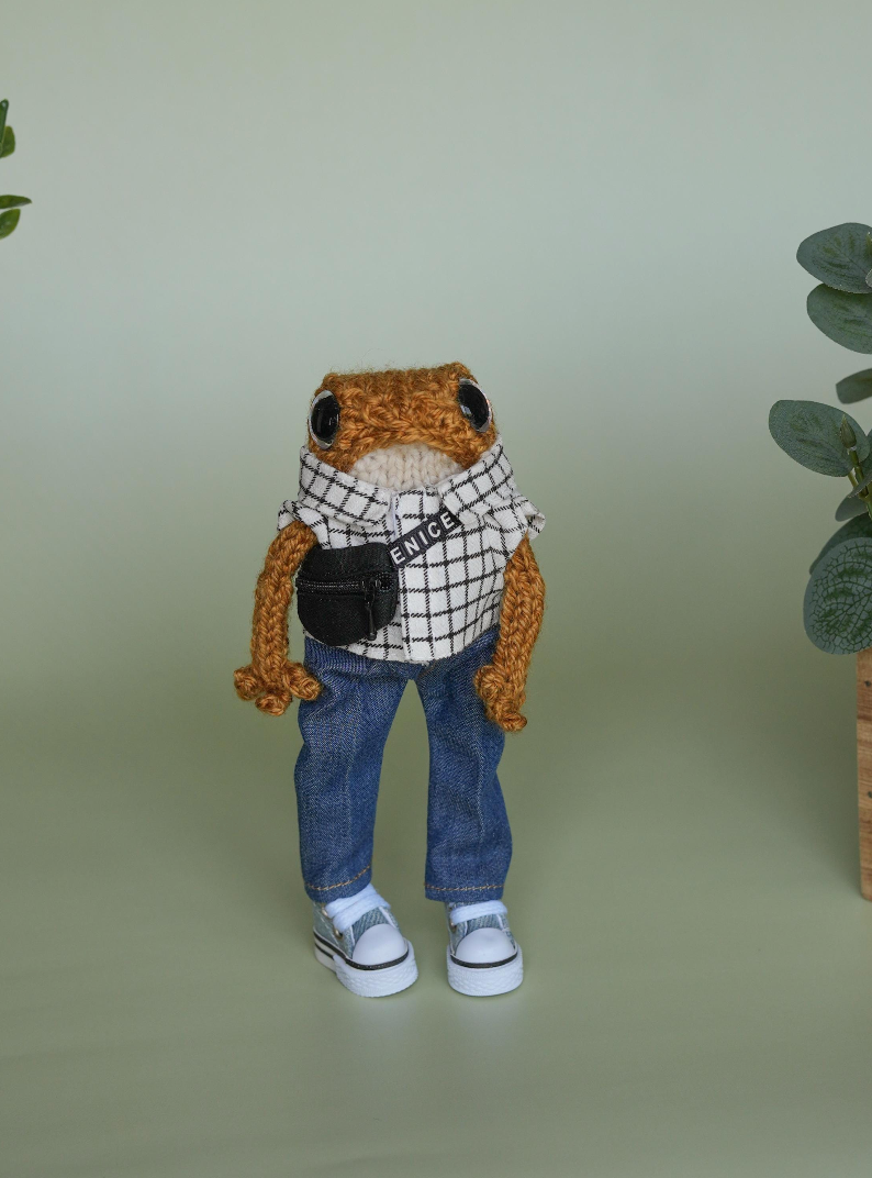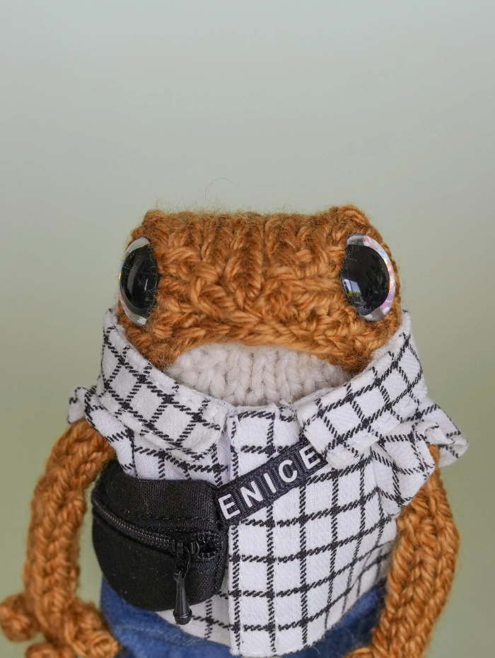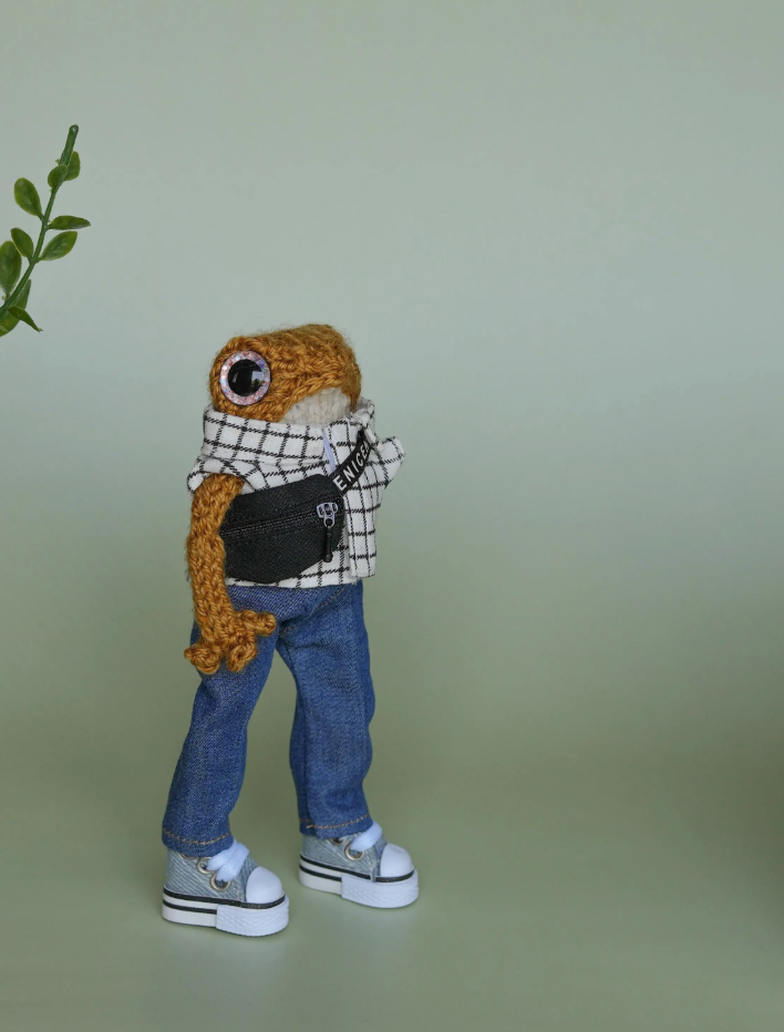 Your frog comes just as shown, complete with outfit, shoes, and accessories, plus a few extra surprises depending on what they’ve packed for their journey 🧳