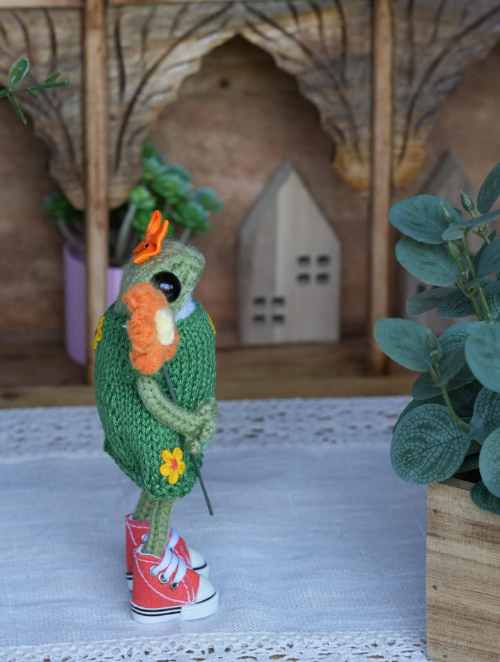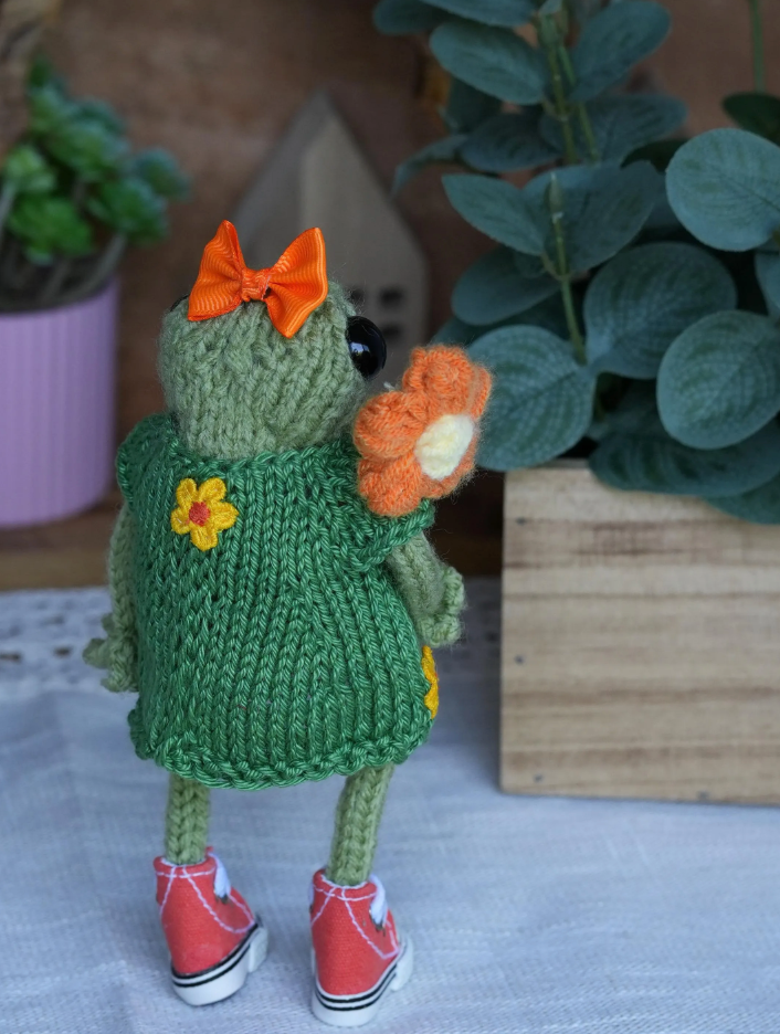 This soft, hand-knitted frog is ready to hop into your heart 💚
