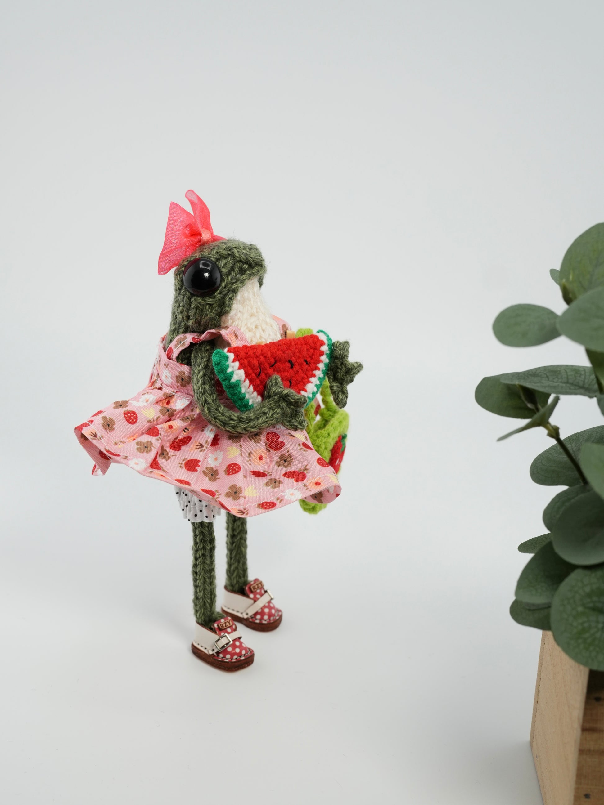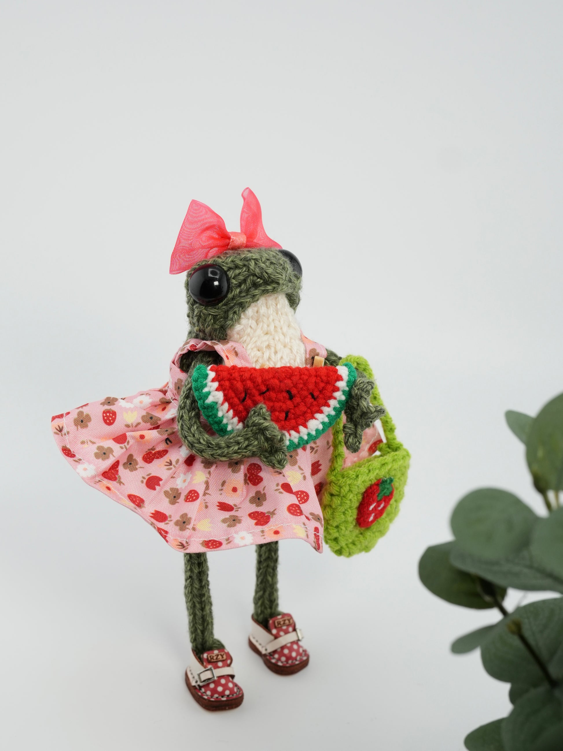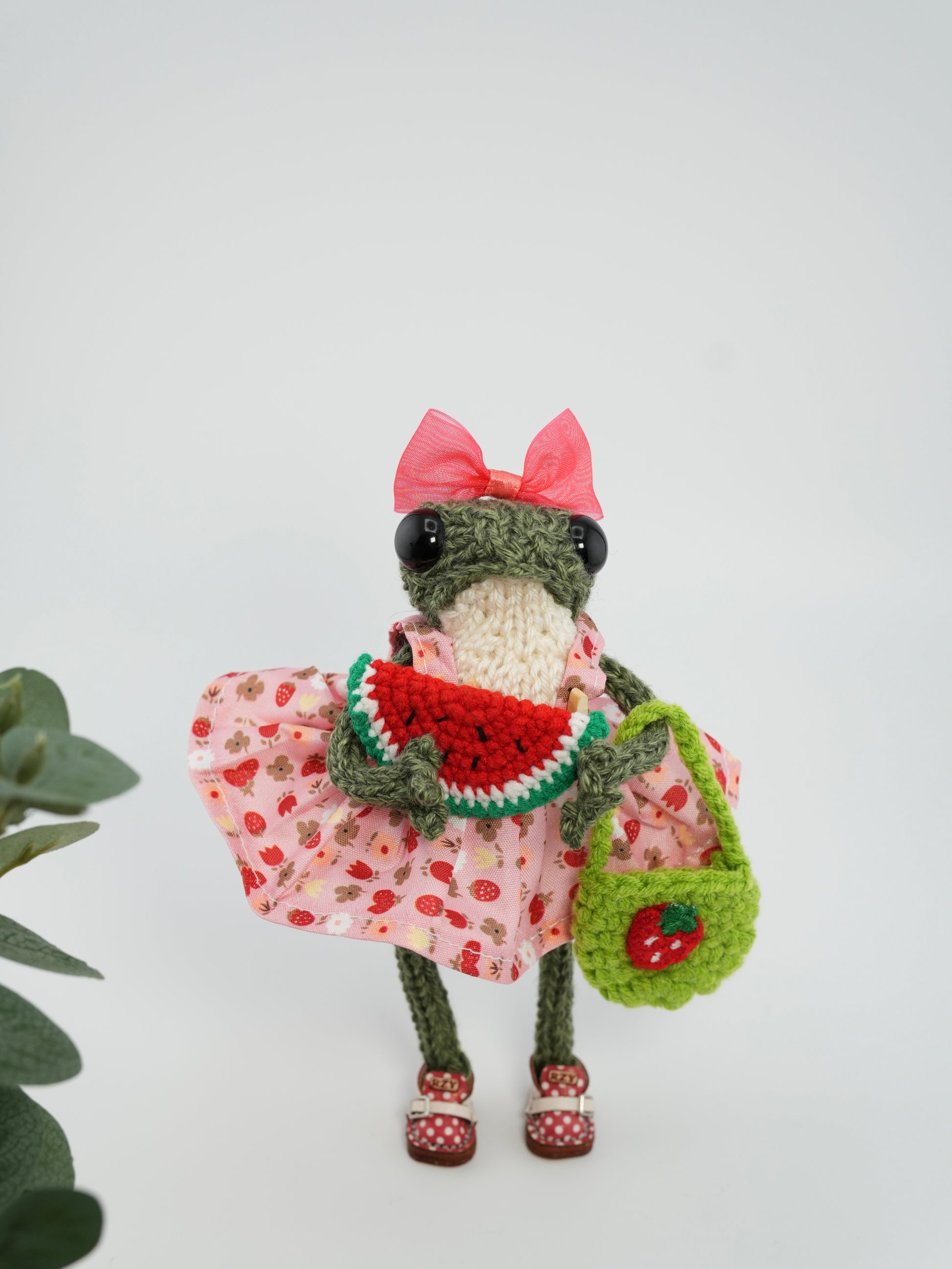 Your frog comes just as shown, complete with outfit, shoes, and accessories, plus a few extra surprises depending on what they’ve packed for their journey 🧳