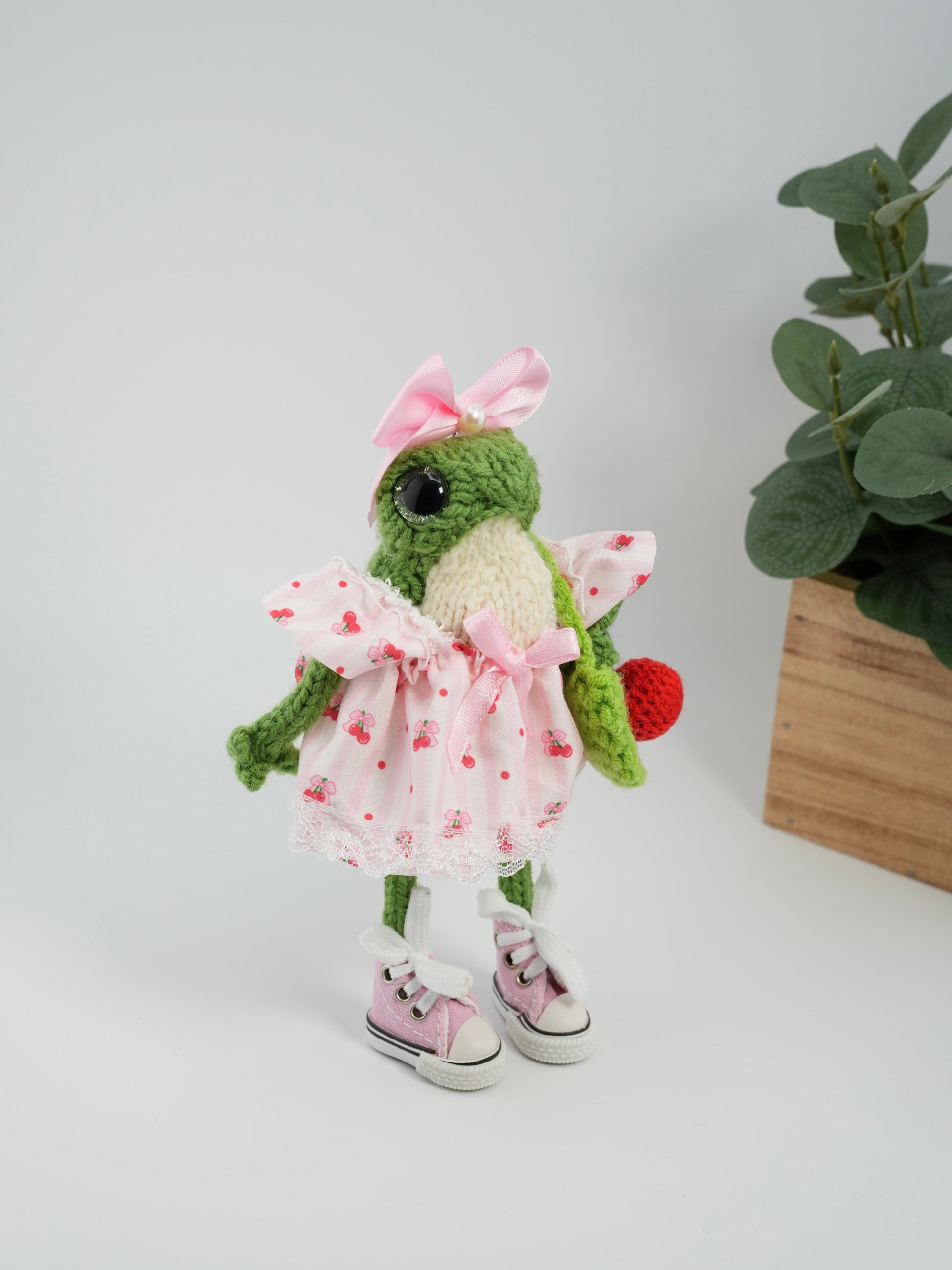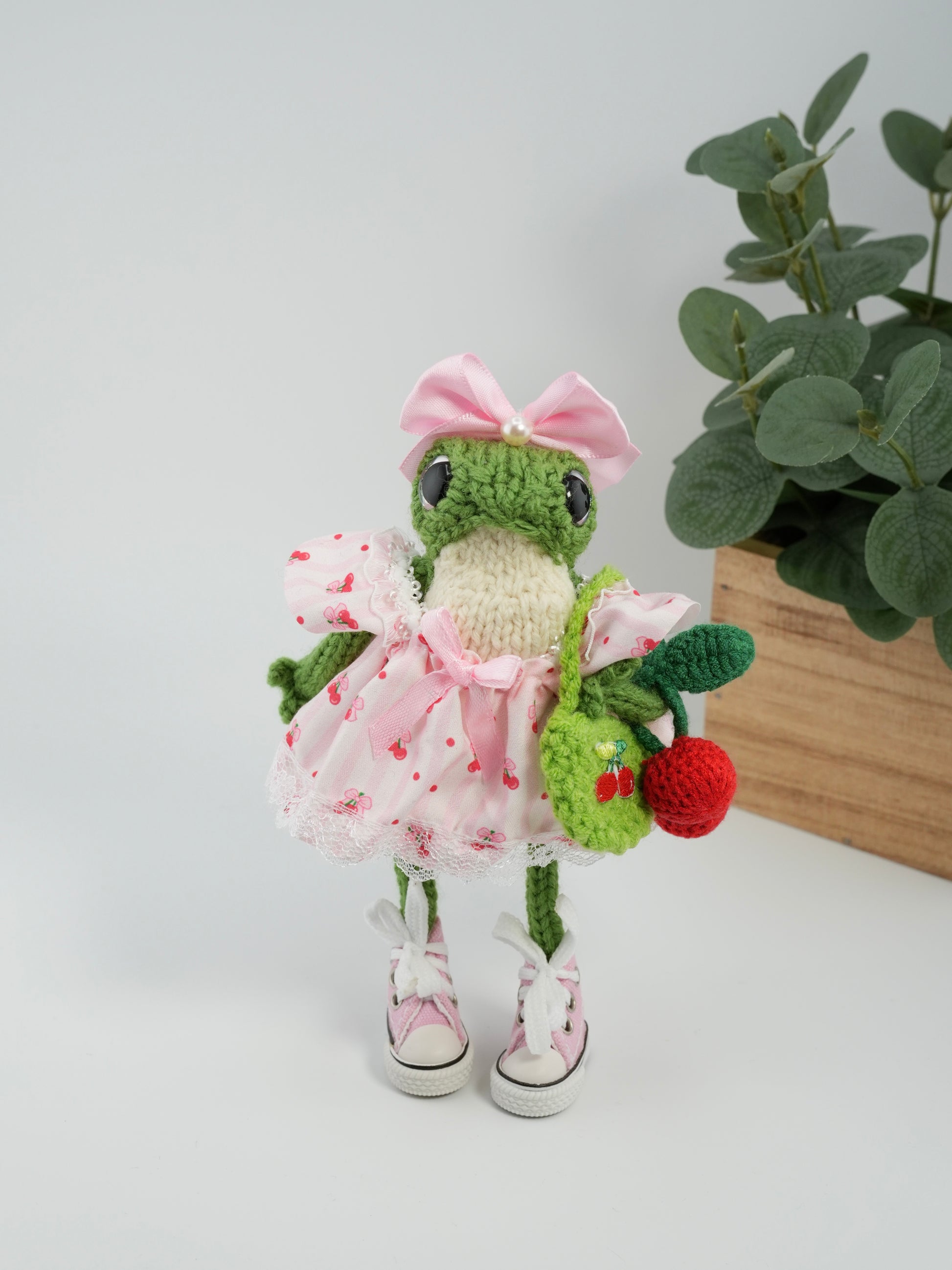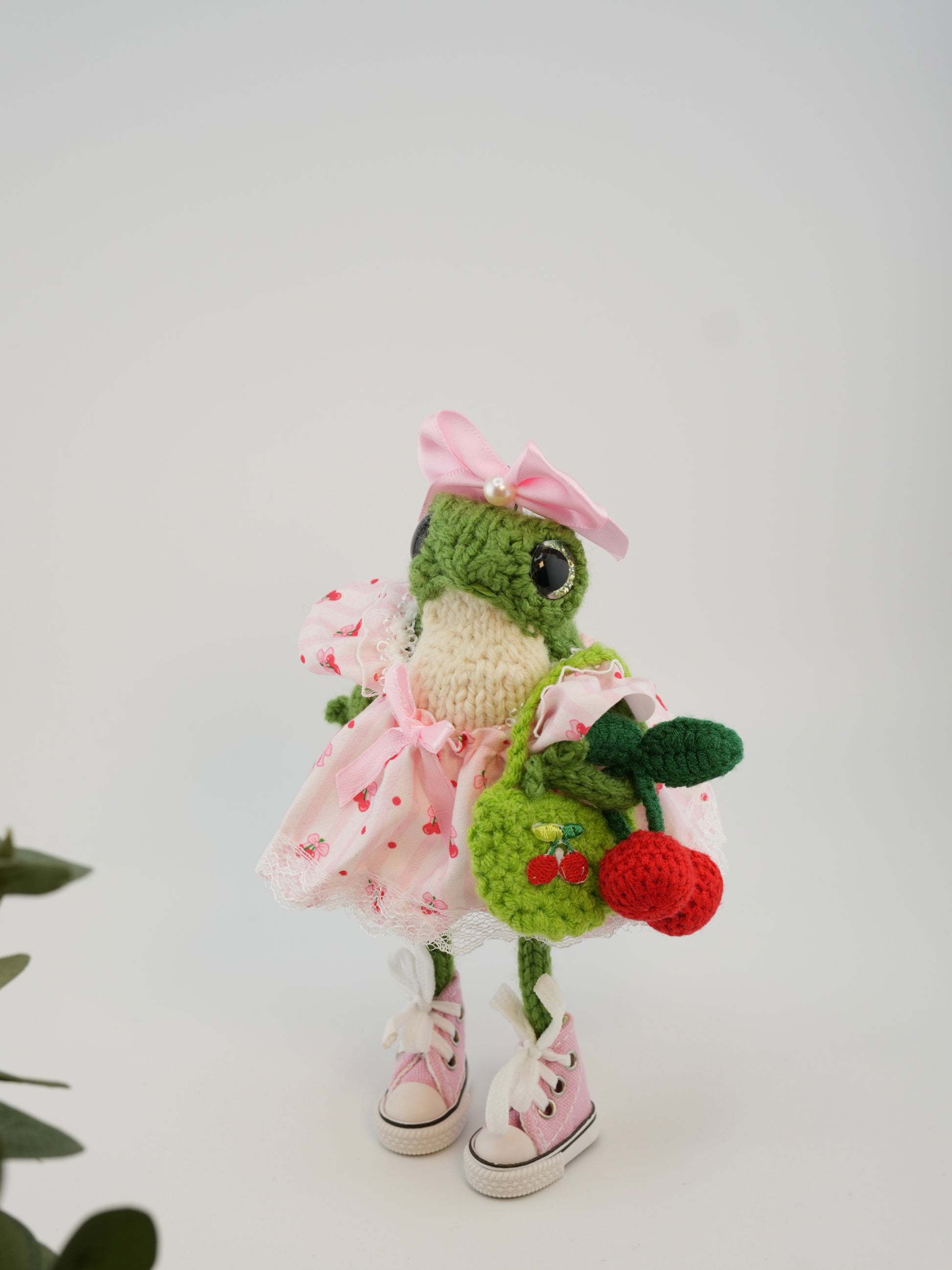 Your frog comes just as shown, complete with outfit, shoes, and accessories, plus a few extra surprises depending on what they’ve packed for their journey 🧳