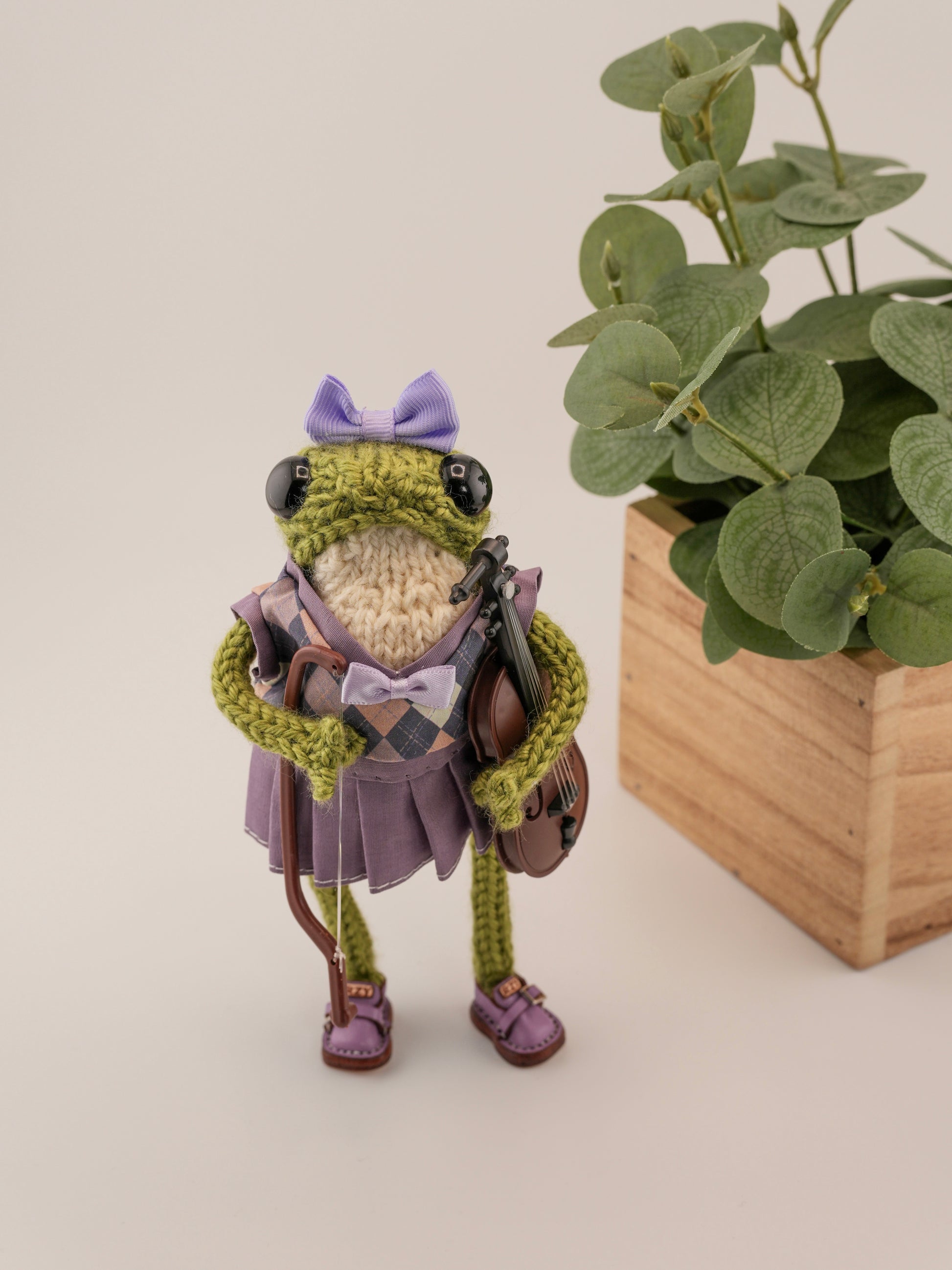 Your frog comes just as shown, complete with outfit, shoes, and accessories, plus a few extra surprises depending on what they’ve packed for their journey 🧳