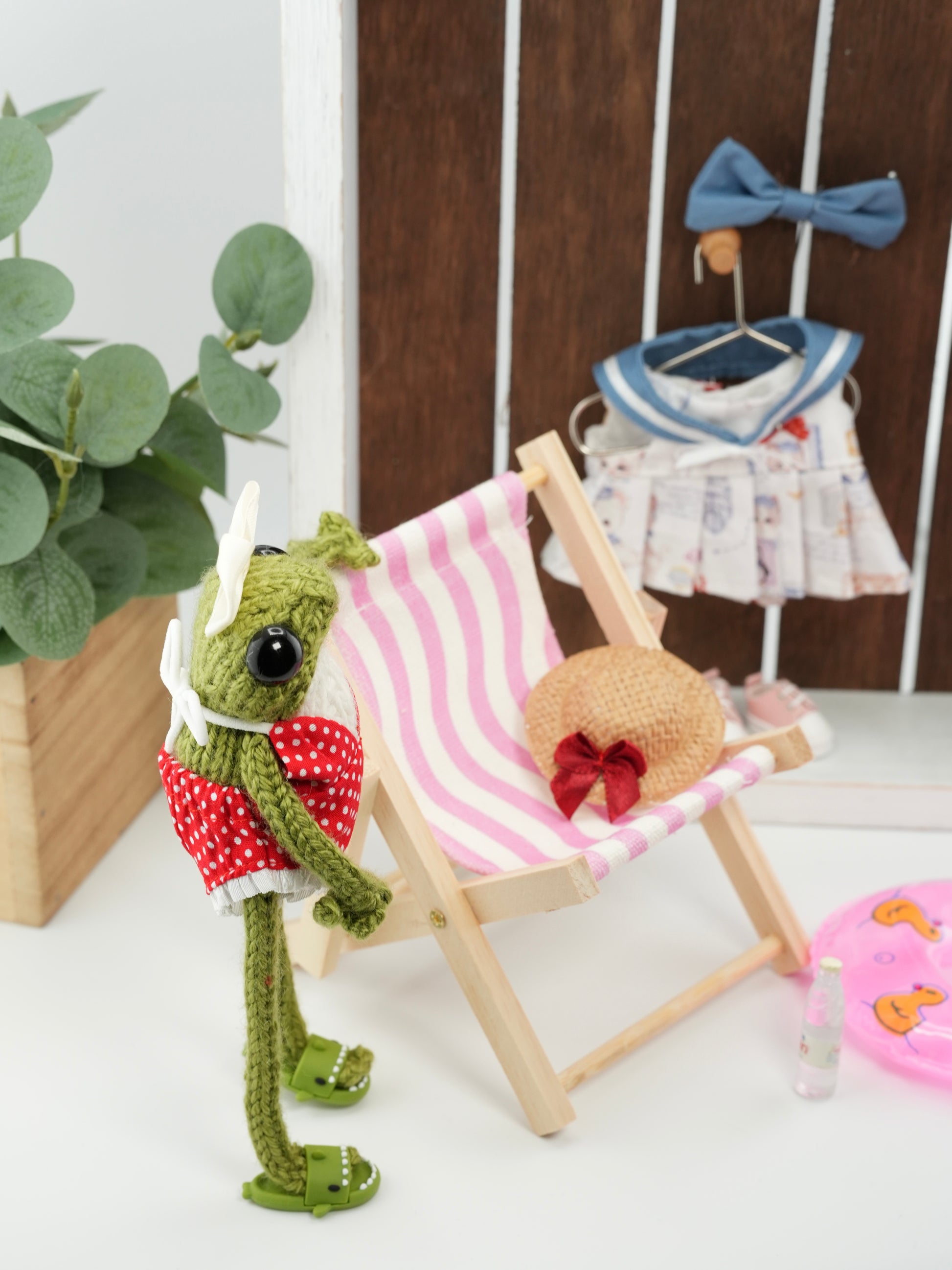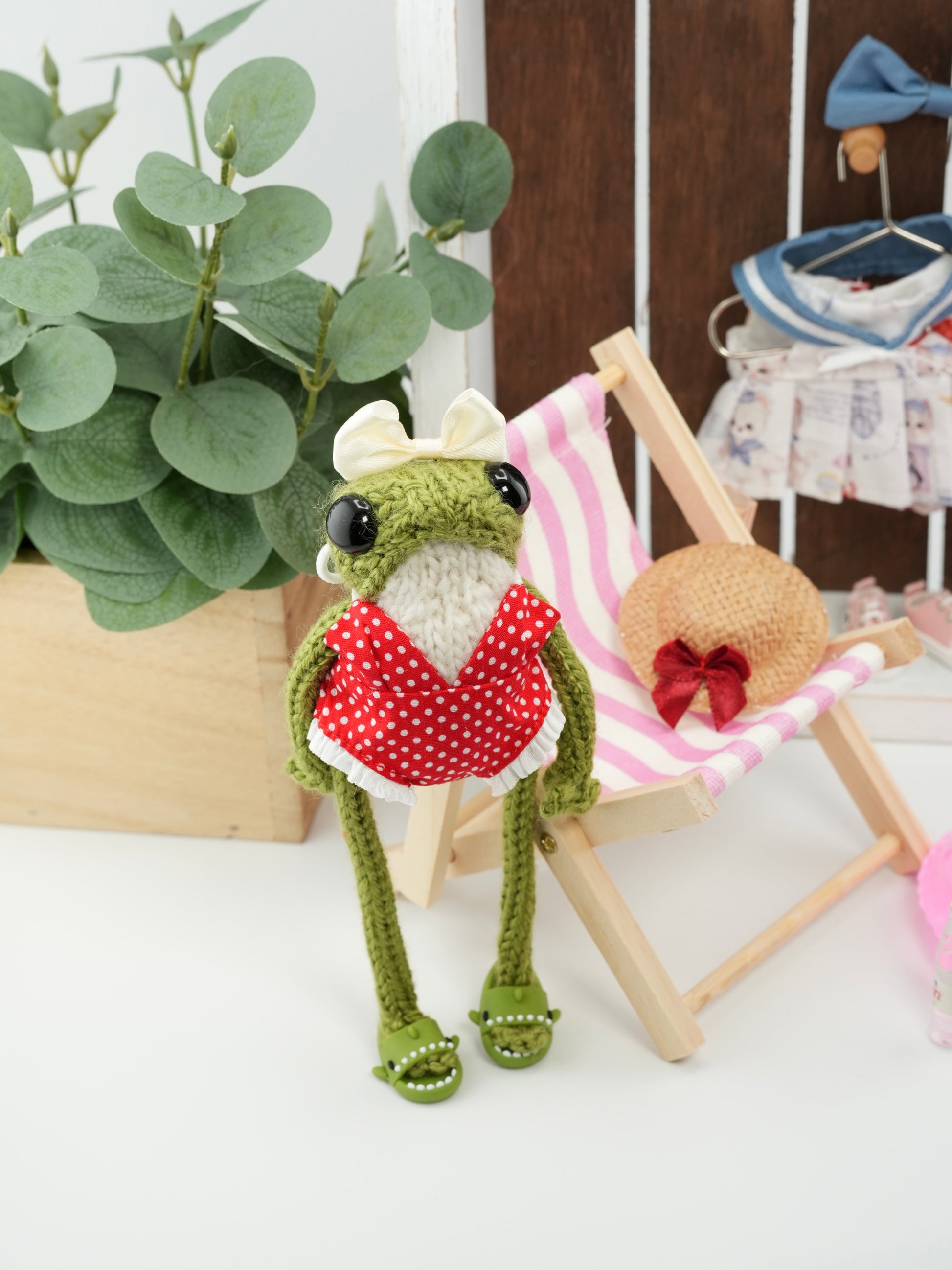 Your frog comes just as shown, complete with outfit, shoes, and accessories, plus a few extra surprises depending on what they’ve packed for their journey 🧳