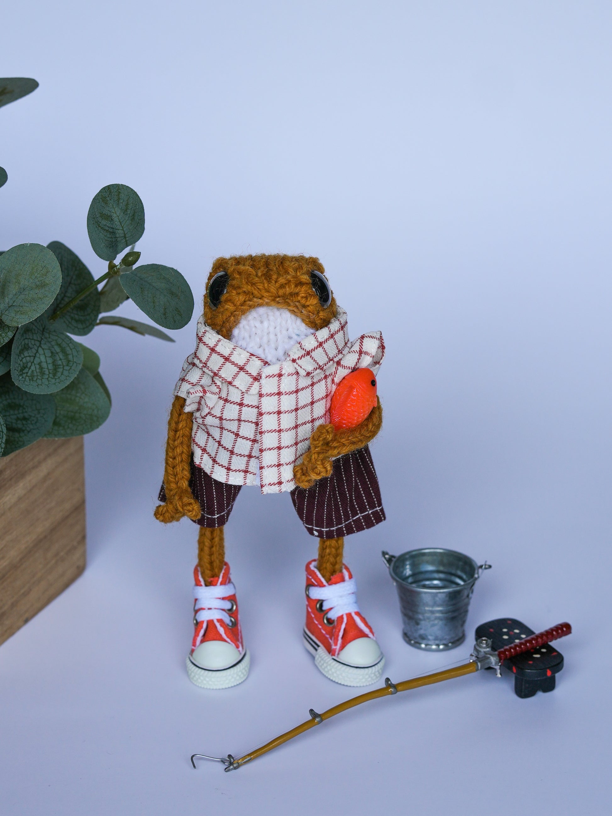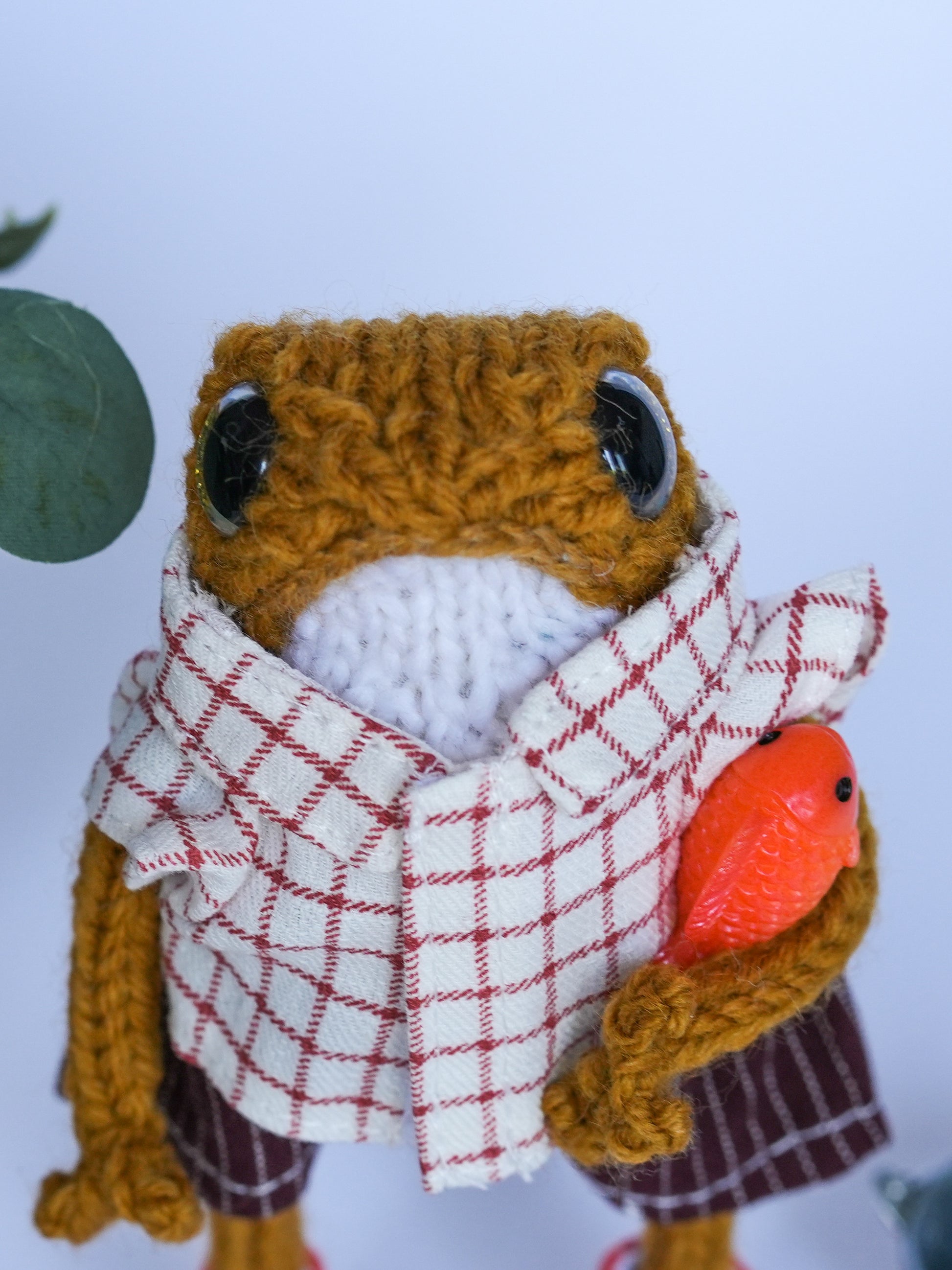 Your frog comes just as shown, complete with outfit, shoes, and accessories, plus a few extra surprises depending on what they’ve packed for their journey 🧳
