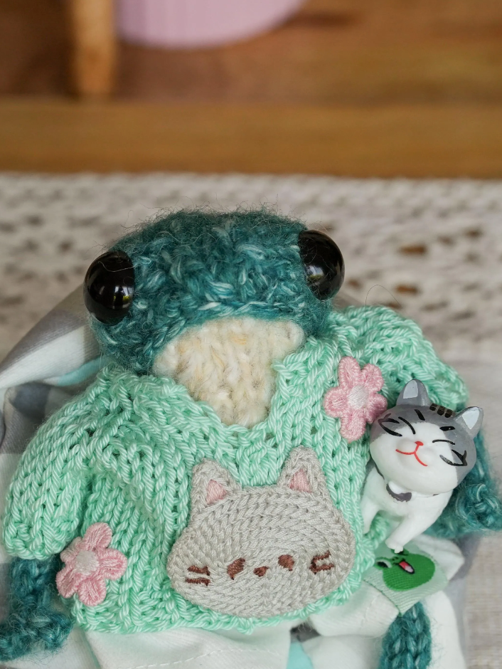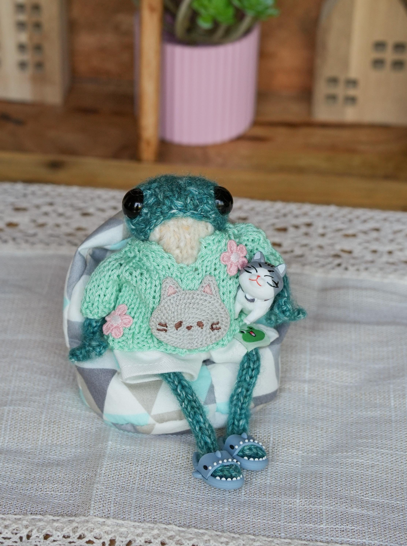 This soft, hand-knitted frog is ready to hop into your heart 💚