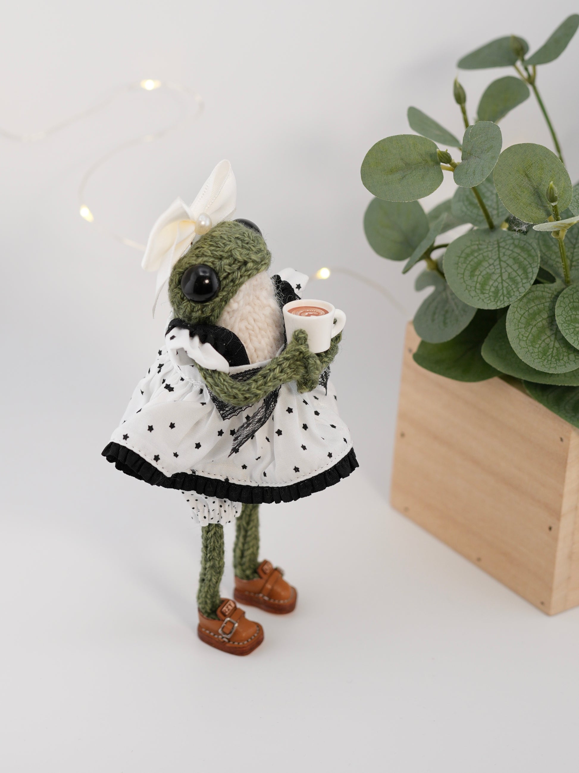 Your frog comes just as shown, complete with outfit, shoes, and accessories, plus a few extra surprises depending on what they’ve packed for their journey 🧳